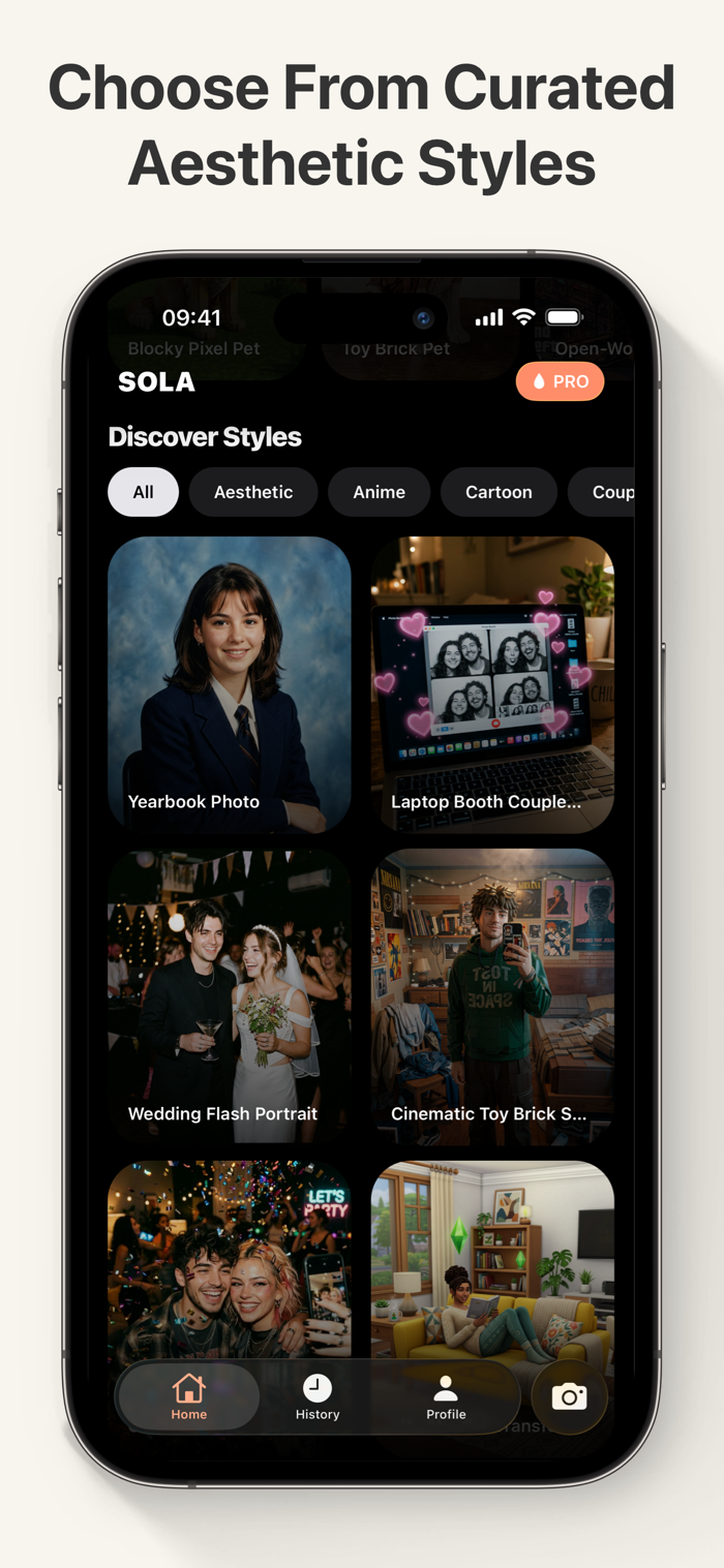 • AI Style Transformation: Turn your photos into extraordinary masterpieces. Sola reimagines your world with a single tap.