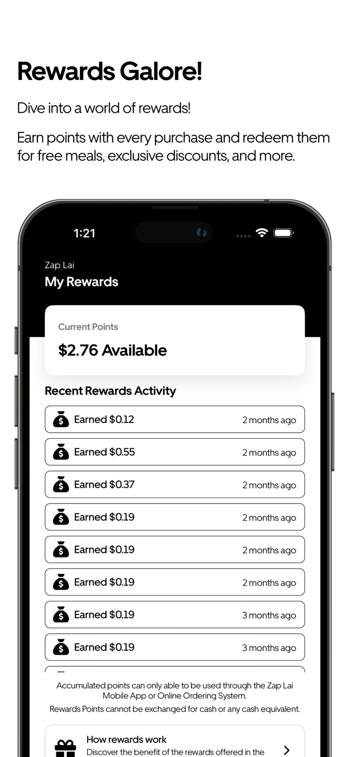Zap Lai新应用带来便捷用餐体验,指尖轻点即可浏览菜单、下单,享受无缝就餐。每次购买能赚取积分,可兑换免费餐食、专属折扣等诱人奖励。应用专为用户设计,下单流程更快更直观,还能提前知晓特惠与促销,享受会员福利。立即下载,畅享其带来的便利与优惠。