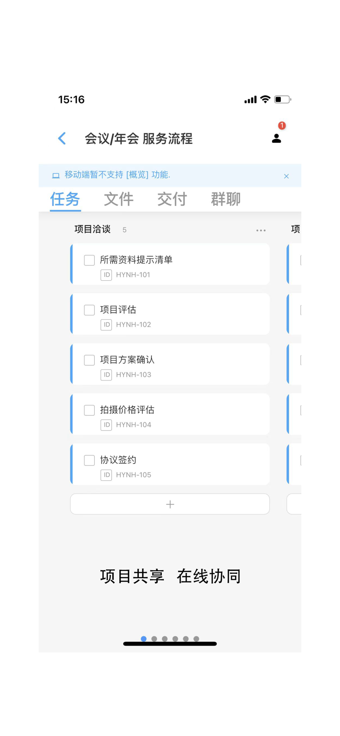 除创建协同项目、建立项目任务等常规协作功能外,还支持创建任务交付执行成果并支持图片、文件、视频、音频所有格式的提交和云端在线实时验收操作。可支持项目内成员的实时沟通交流,项目工作进度随时掌控。彻底摆脱不见面工作无效率的状态。