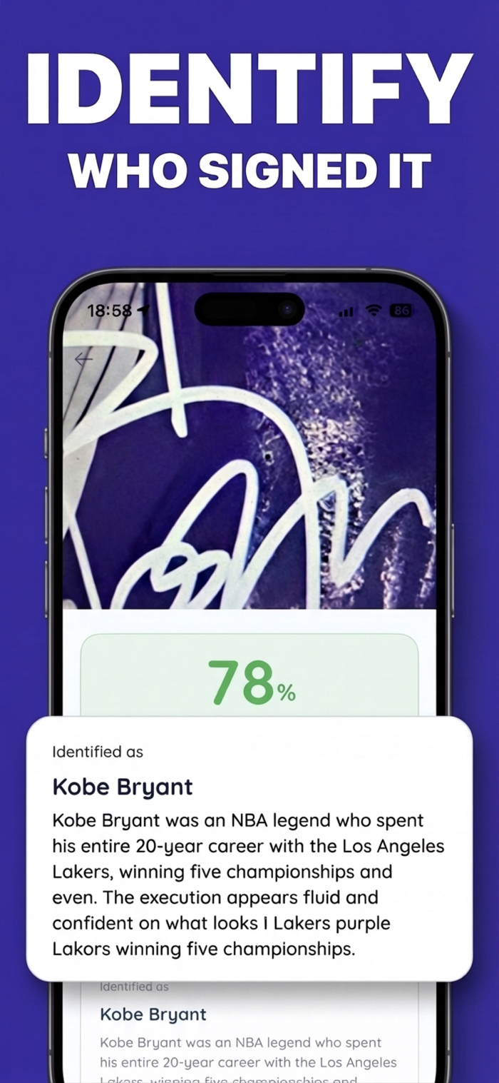 Using advanced AI technology, the app works as a signature scanner and autograph identifier, helping you recognize famous signatures and analyze handwriting patterns. Whether you found a signed photo, collectible card, or document, you can quickly verify autograph details and get insights about the signature’s background.