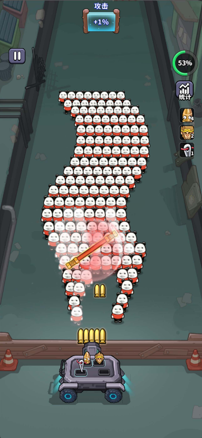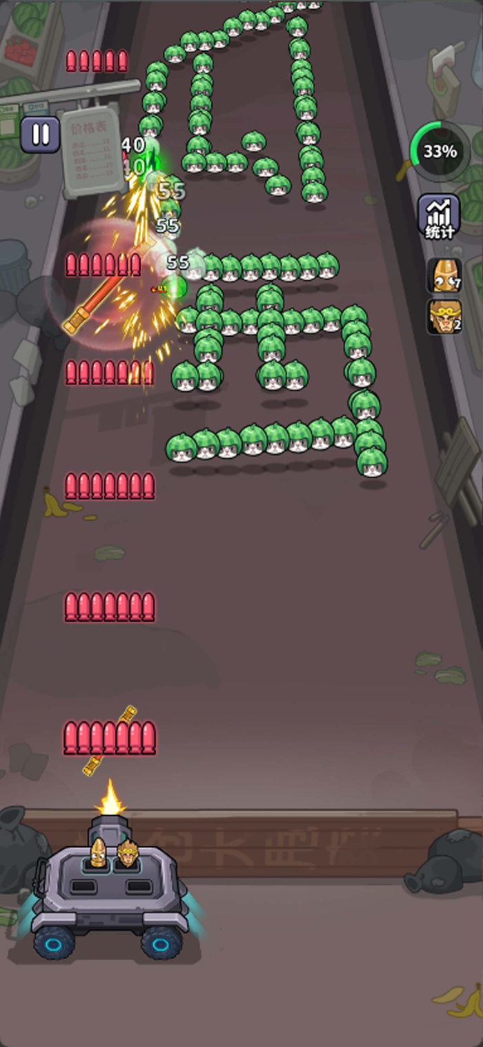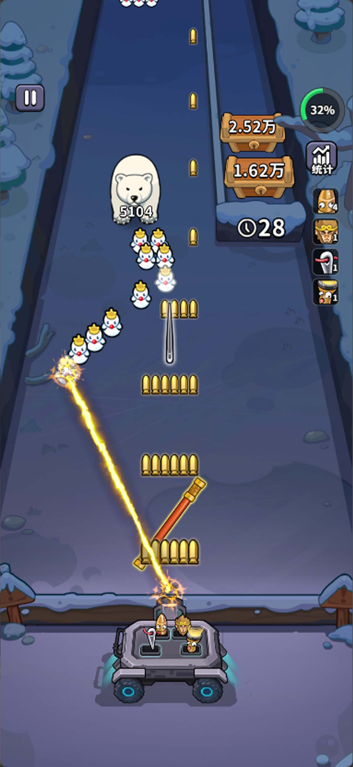你将驾驶一辆强力战车,在狭长的通道中左右移动,迎击从桥上源源不断涌来的敌人。战车会自动发射弹幕,你的任务就是灵活走位,将所有来犯之敌和神秘宝箱统统粉碎。每一波次的清空或强大BOSS的倒下,都将带来无与伦比的成就感。