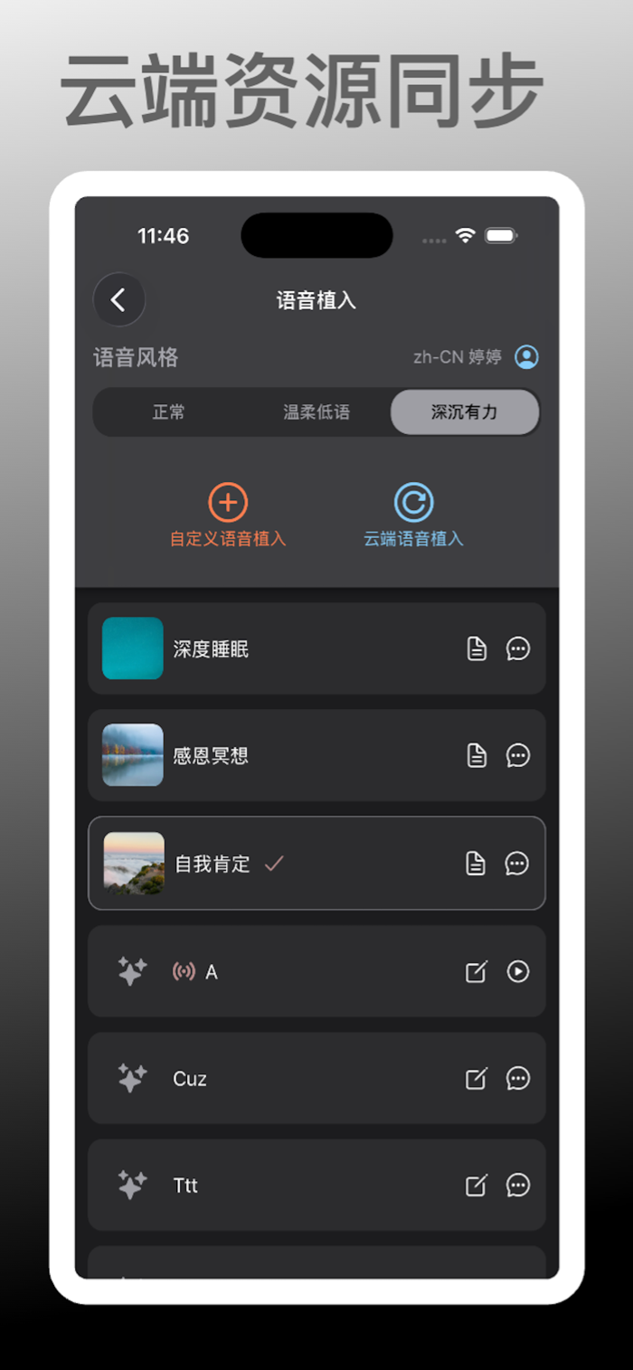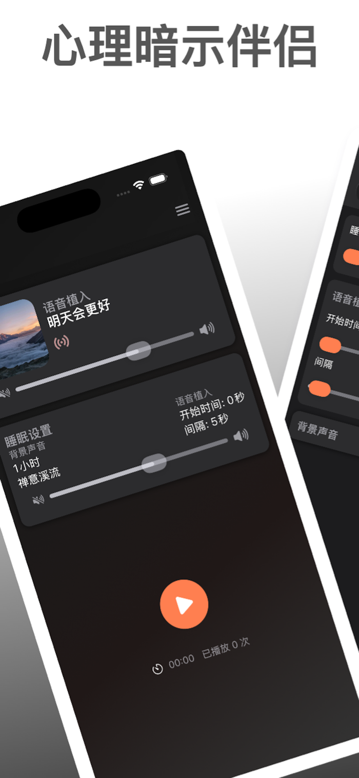 该产品通过定期积极心理暗示培养正向思维模式实现内在提升。可自定义暗示语句、定时播放,有多种语音风格且支持多语言,能设置每日练习提醒,界面简洁无干扰。适用于日常正念练习、睡前心理建设等。高级功能为订阅后可创作编辑植入信息。无需注册,不收集个人信息,语音识别在设备端保障隐私,使用条款:https://www.apple.com/legal/internet-services/itunes/dev/stdeula/ 。