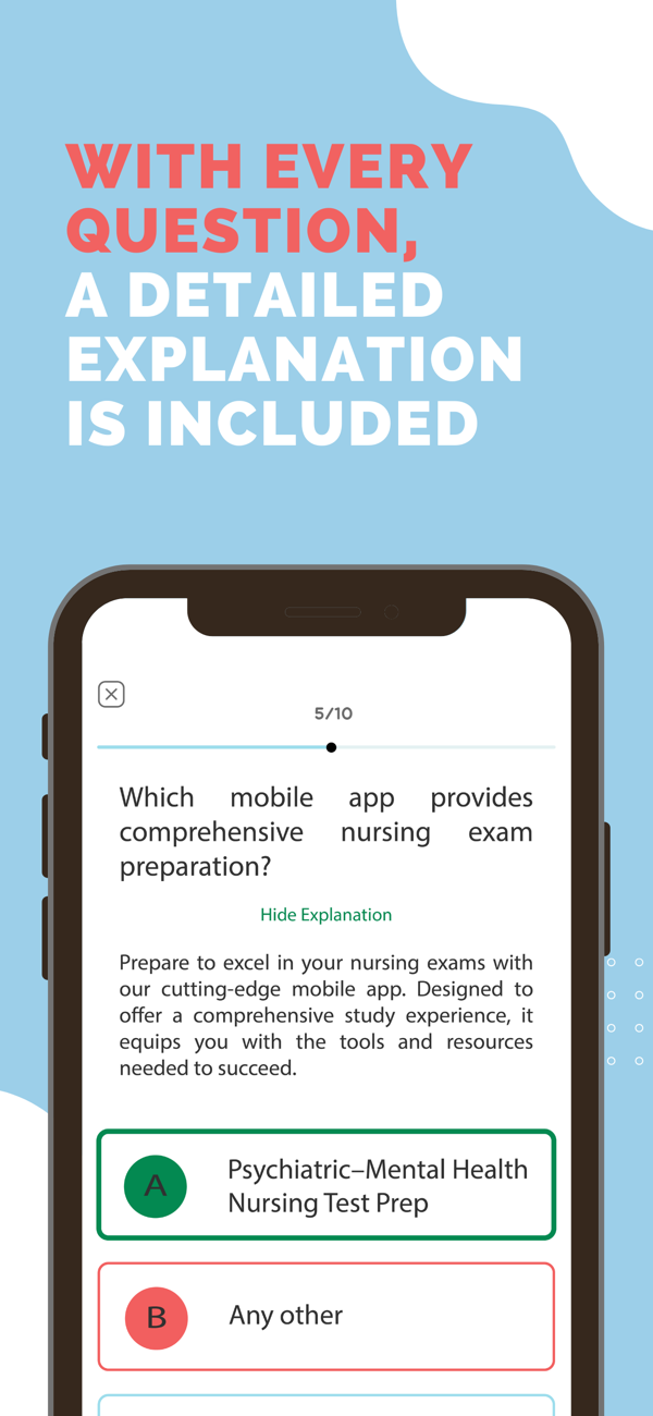 With our ANCC PMHN Nurse Exam Prep app, you’re not just preparing for an exam — you’re preparing for success. Ace the ANCC PMHN exam with confidence and join the ranks of skilled psychiatric-mental health nurses, making a significant impact in the field.