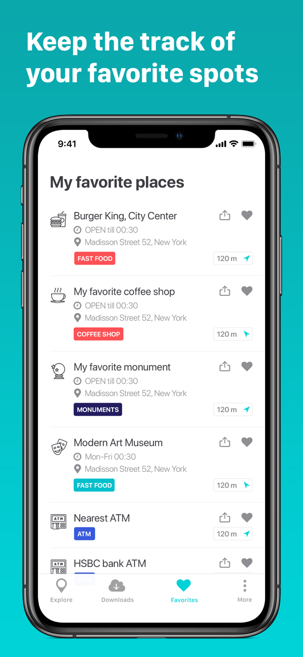 - Keep the track of your favorite places and share them with friends.