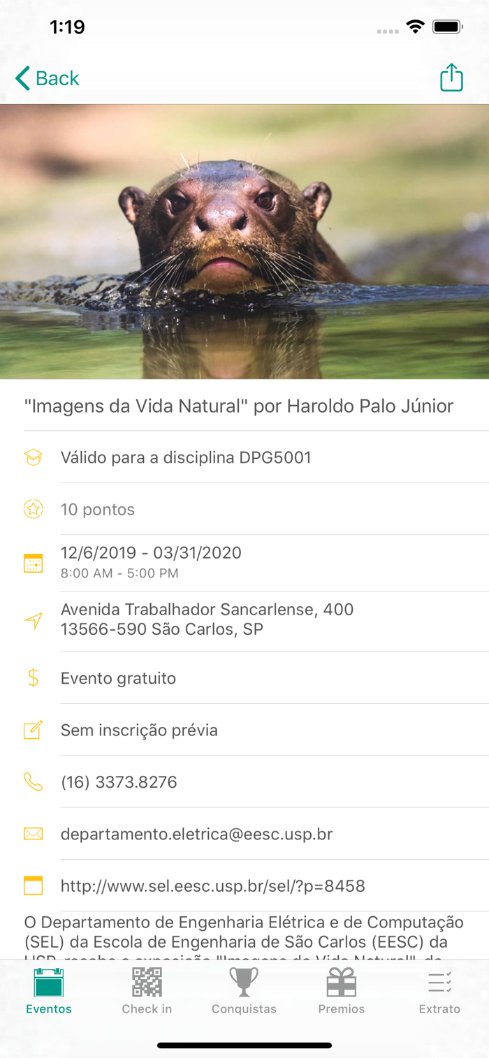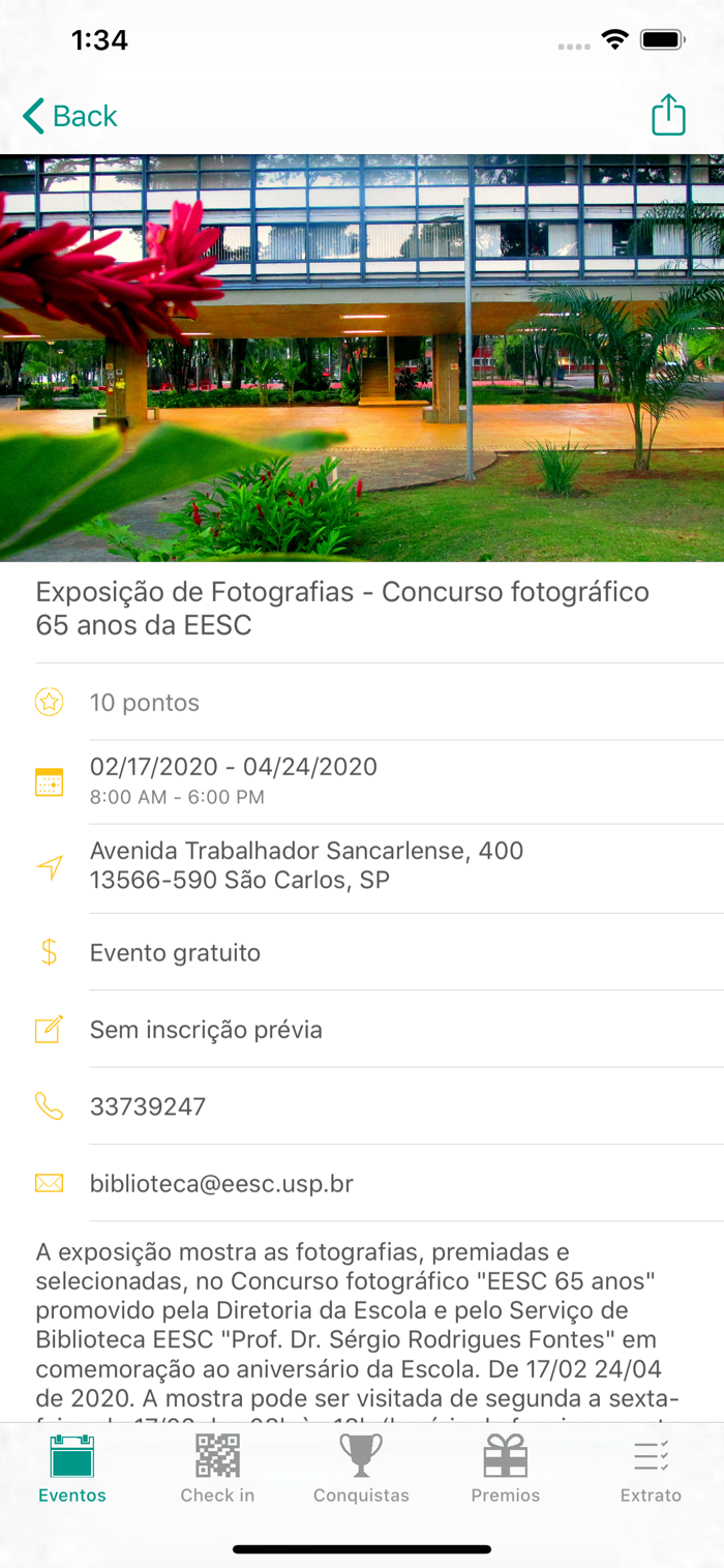 O Entreartes convida você conhecer e participar das diversas atividades culturais que acontecem na USP. Selecione a atividade desejada e vá até o local que onde ela acontece. Lá você encontrará um QRCODE da atração. Faça a leitura com seu celular e acumule pontos para trocar por brindes e também para reverter em carga horária para ser contabilizada na disciplina de pós-graduação DPG5001. Defina seu perfil de interesse e participe dessa brincadeira.