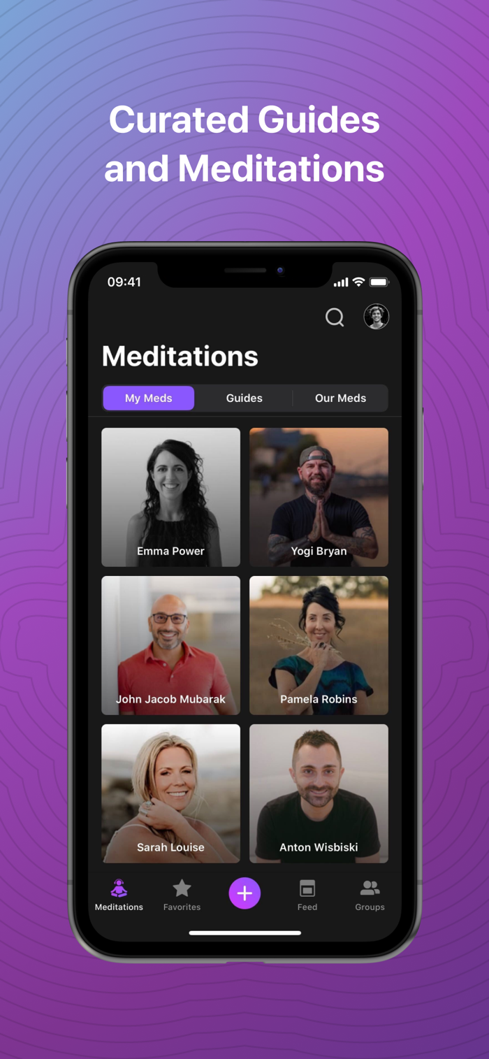 By following your favorite guides, you receive access to their listed events as well as their meditations on the Med Collective. Keep up to date with guide events via the feed and unique guide profiles.