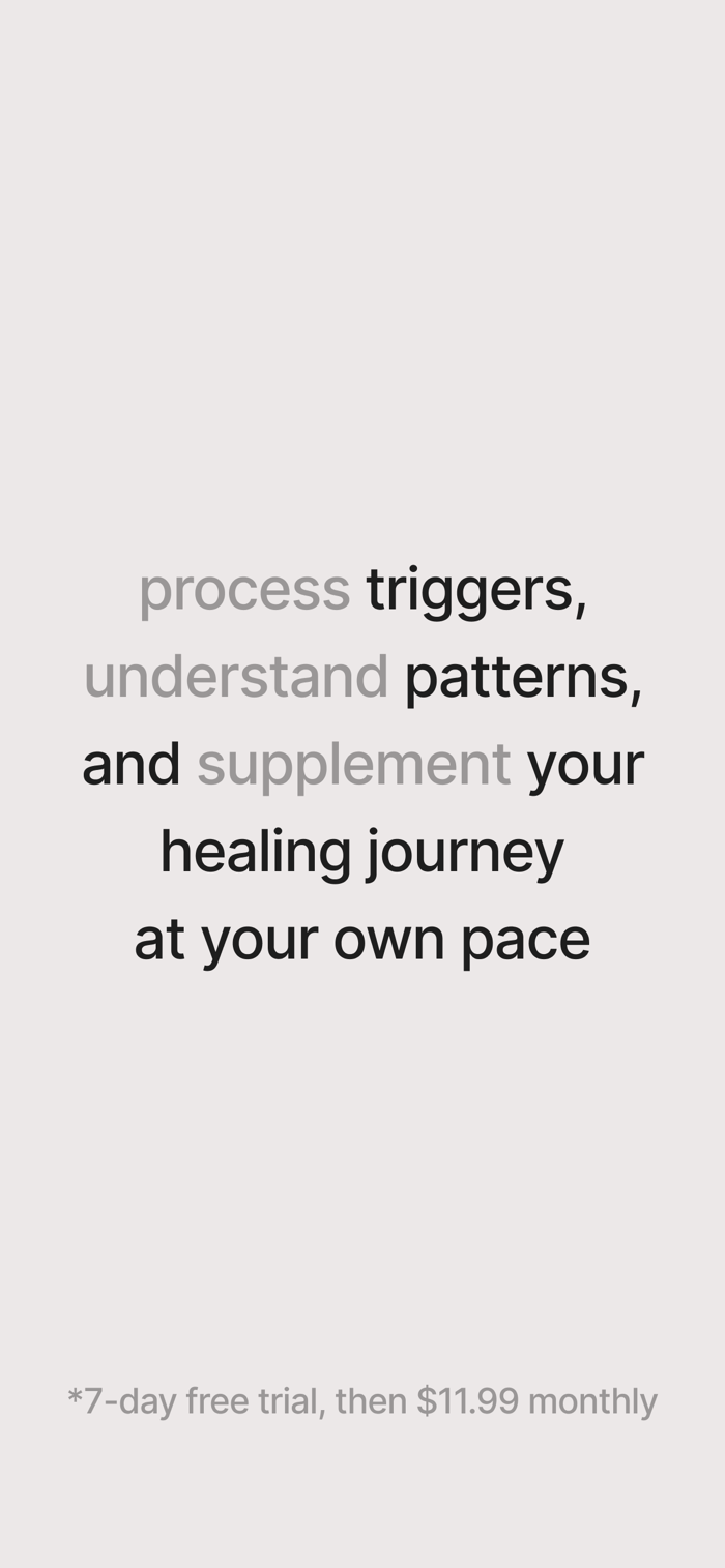 ProcessIt是一种在专业治疗期间或无法接受治疗时用于处理和模式识别的工具。它不能治愈创伤,但能帮助你理解并引导你度过创伤。