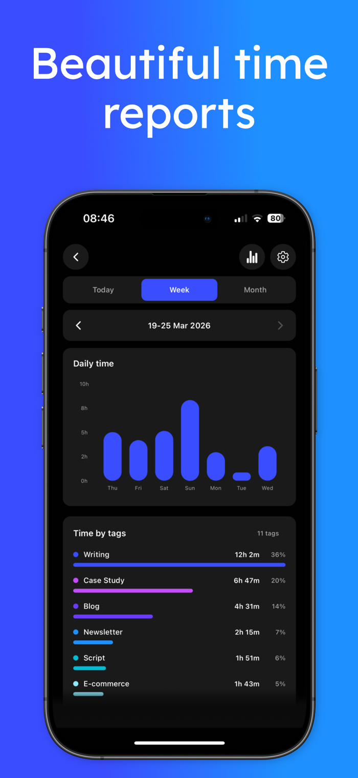 Timello is the simple, beautiful time tracker designed for people who value their time. Whether you're a freelancer tracking billable hours, a student monitoring study time, or a professional wanting to boost productivity — Timello helps you understand where your time goes.
