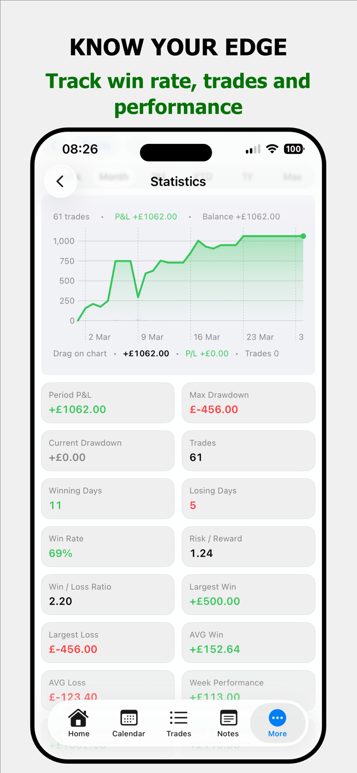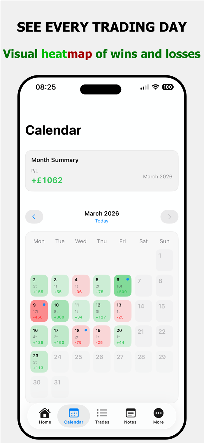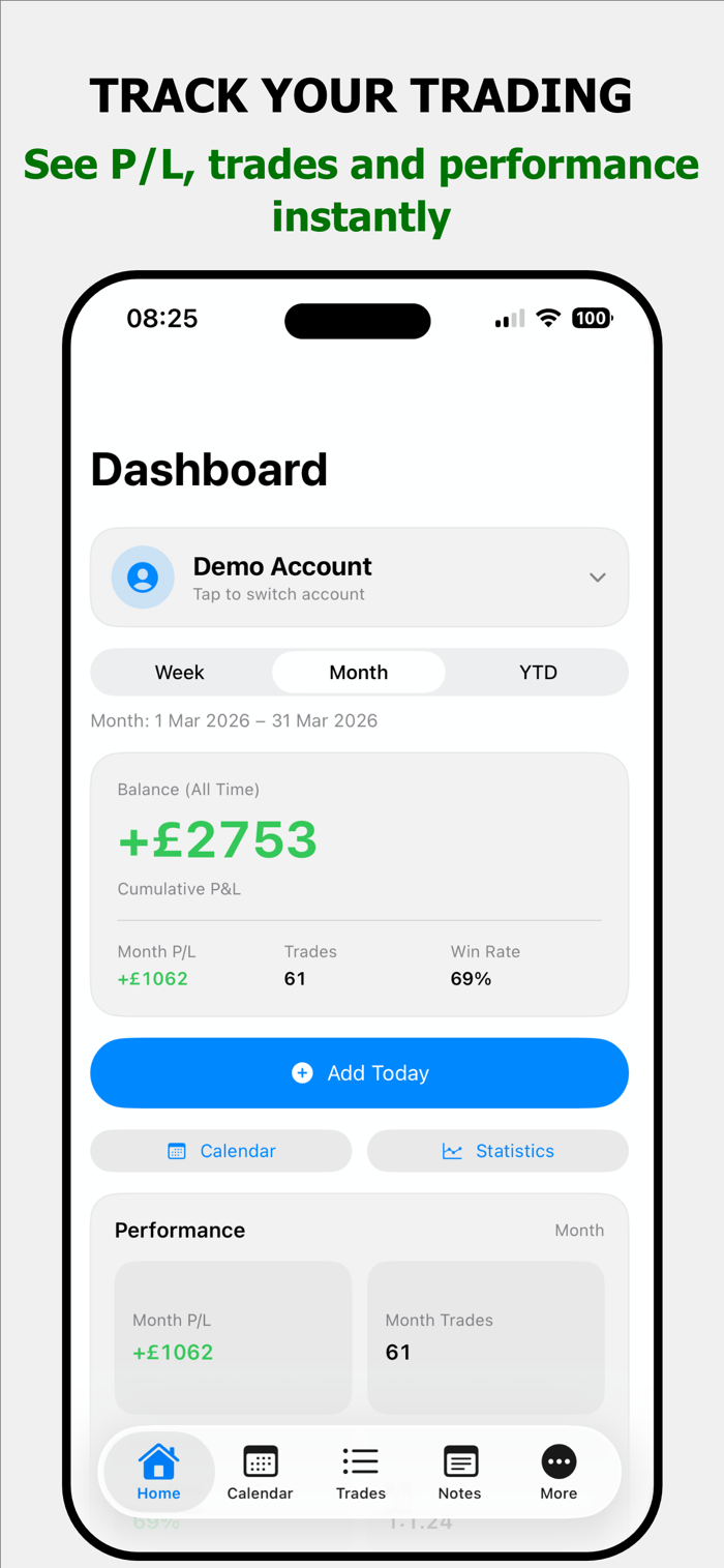 Log your daily P&L, monitor trade count, and understand your performance through a simple system built for discipline and clarity.