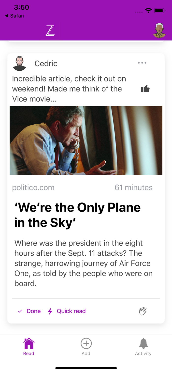 Zuster is a new social reading list. Save articles you want to read. Share your favourite ones with friends. For each article you also get quick read feature, where the most important sentences are selected by a machine learning algorithm.