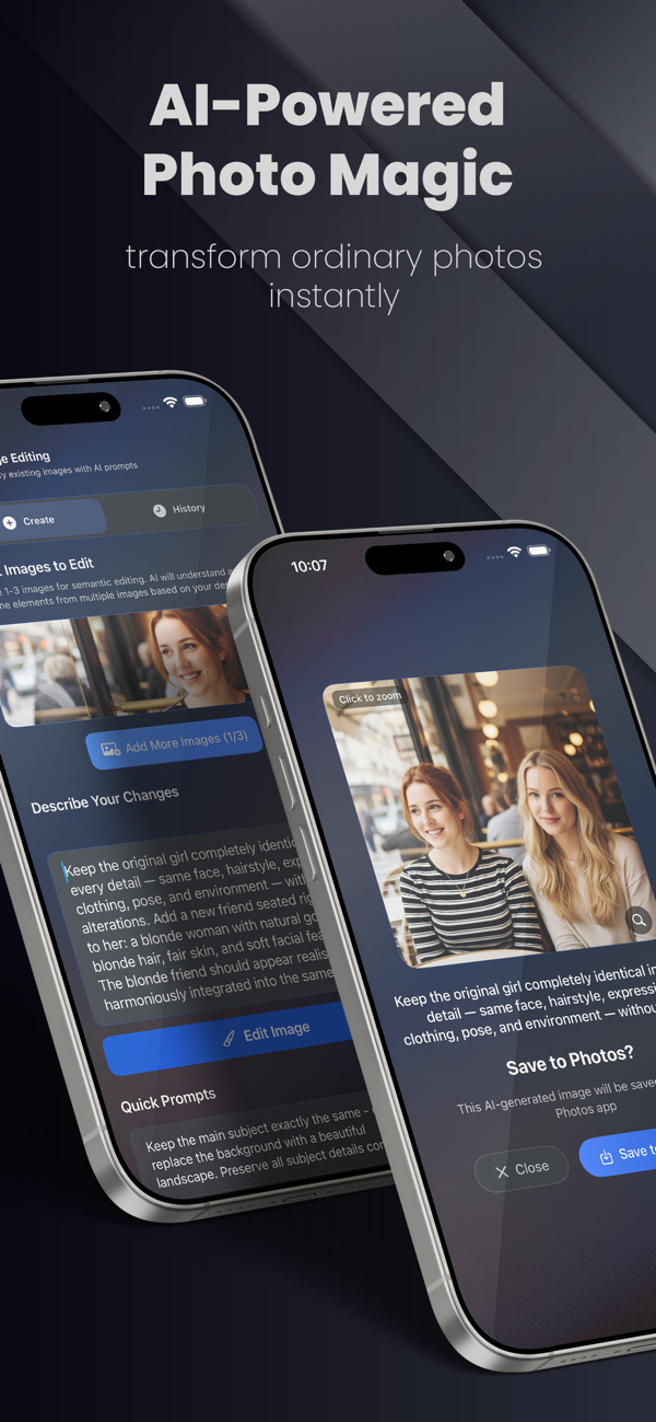 AI Banana Lab is the ultimate AI-powered creative studio in your pocket. Whether you want to restore cherished memories from damaged old photos or transform a simple selfie into a Cyberpunk masterpiece, our advanced AI models make it possible in seconds.