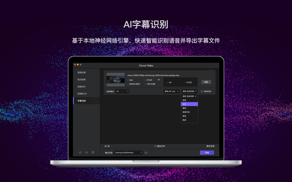 【字幕识别】基于本地神经网络引擎,快速智能识别语音并导出字幕文件。