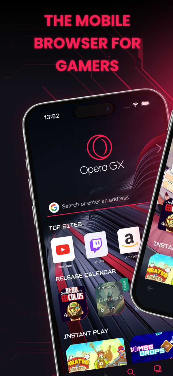Opera GX brings the gaming lifestyle to your mobile. Express yourself with custom skins, discover free games and the best deals with GX Corner, share links easily between mobile and desktop with My Flow, and much more. All in a secure, private browser.