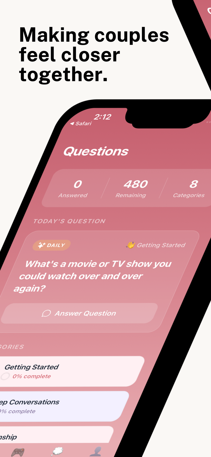 • Deep Connection: Explore "Finish the Sentence" prompts, Deep Questions, and the Connection Quiz to test how well you really...