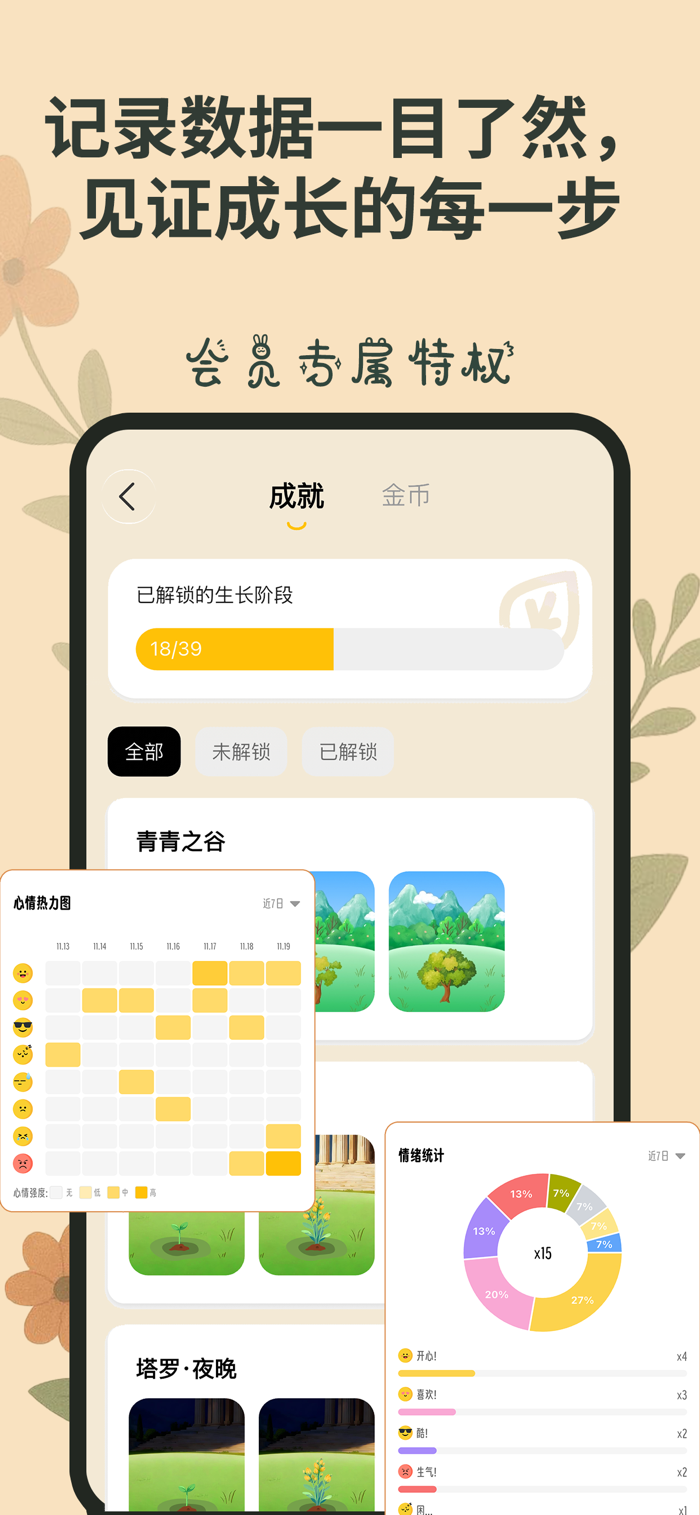 这是一款能让你用记录种出秘密花园的产品。它可用多种纸张模板记录每日心情,随心表达。记录心情能获养分解锁新植物,还有丰富素材如主题纸张、特效、贴纸、字体可装饰。有下雪、繁星等治愈特效打造梦幻花园,能可视化展示心情变化与成长轨迹,支持多种配色主题切换匹配情绪,让心情有被温柔收藏的地方,开启心情花园之旅。