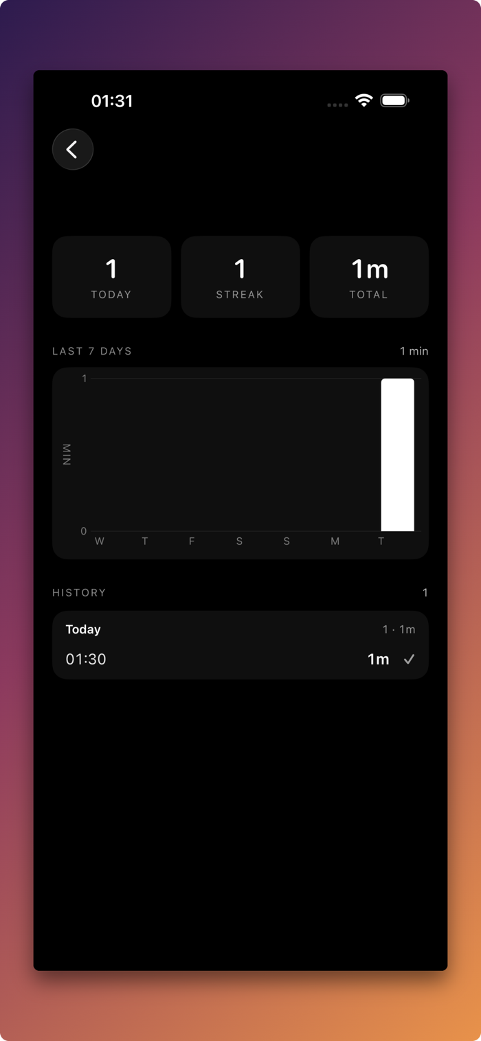 Drag the timer to set your duration. Tap start. The ring breathes while you focus.