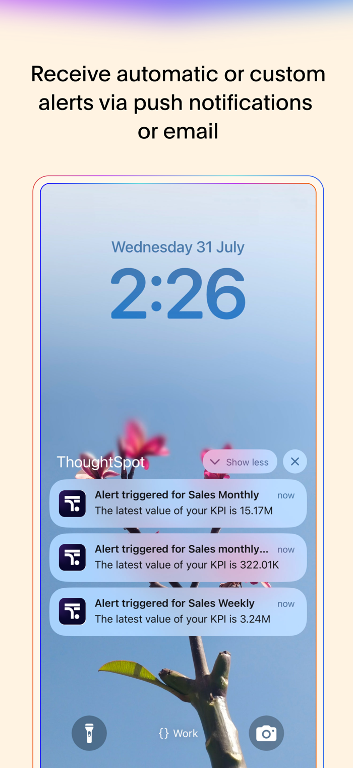 ThoughtSpot Mobile让人工智能驱动的分析轻松便捷,随时随地提供实时洞察。可提自然语言问题获可信洞察,浏览交互实时看板与答案,深入研究人工智能答案提后续问题,监控重要指标,发现KPI变化驱动因素,设接收KPI警报,一键分享洞察,切换组织访问数据,设置主页实时看板。