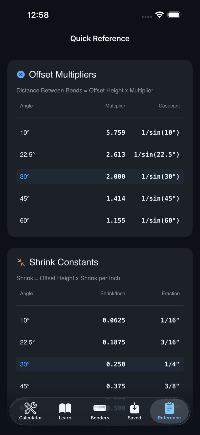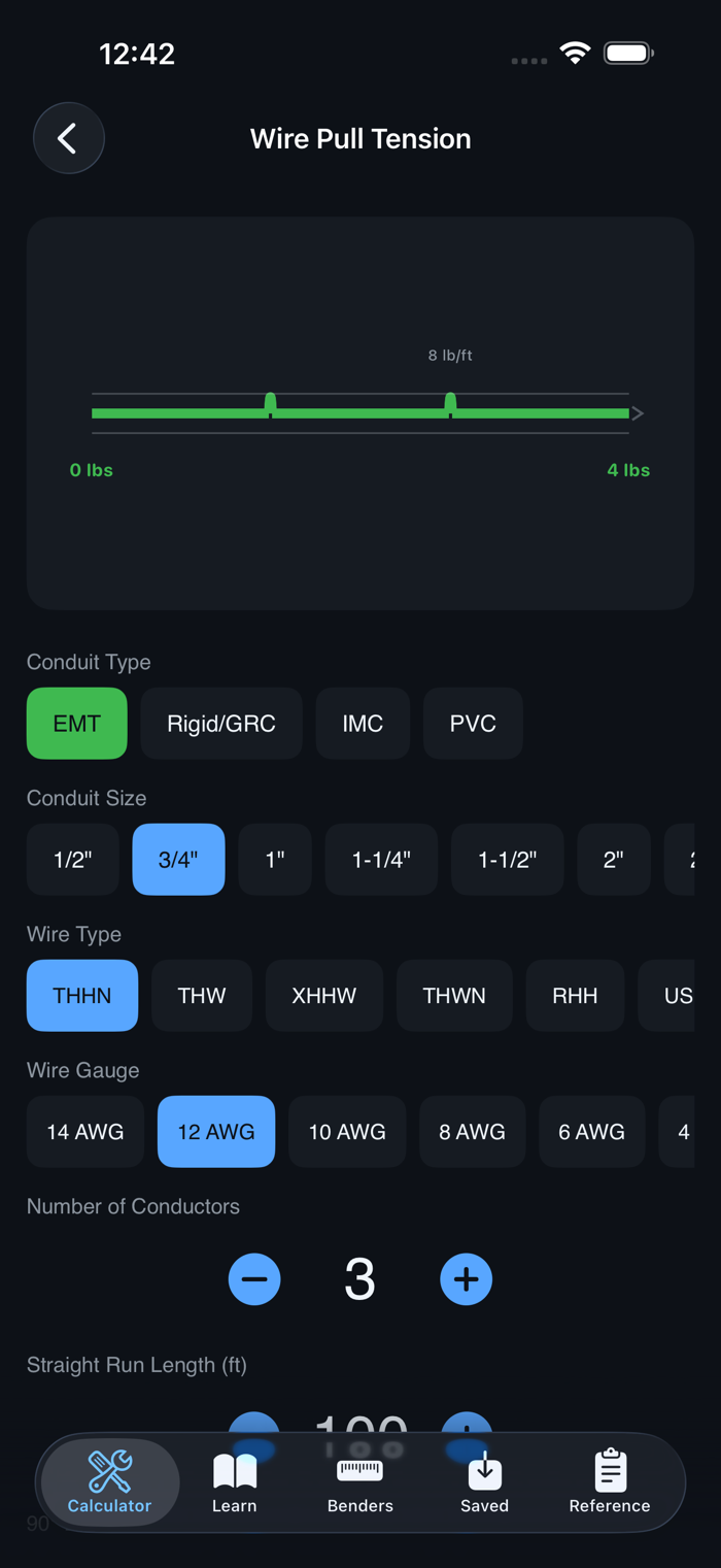 ConduitPro is the only conduit app that combines all 9 bend calculators, NEC conduit fill