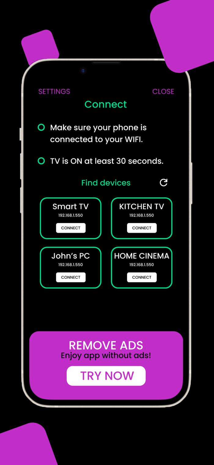 Turn your phone into a universal remote with TV Remote+! Control your TV from one easy-to-use app. With an intuitive interface and seamless connectivity, TV Remote+ makes it simple to change channels, adjust volume, and access your favorite streaming platforms—no more searching for the remote! Perfect for streamlining your home entertainment setup.