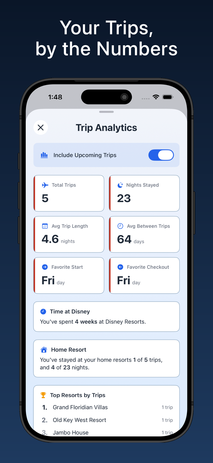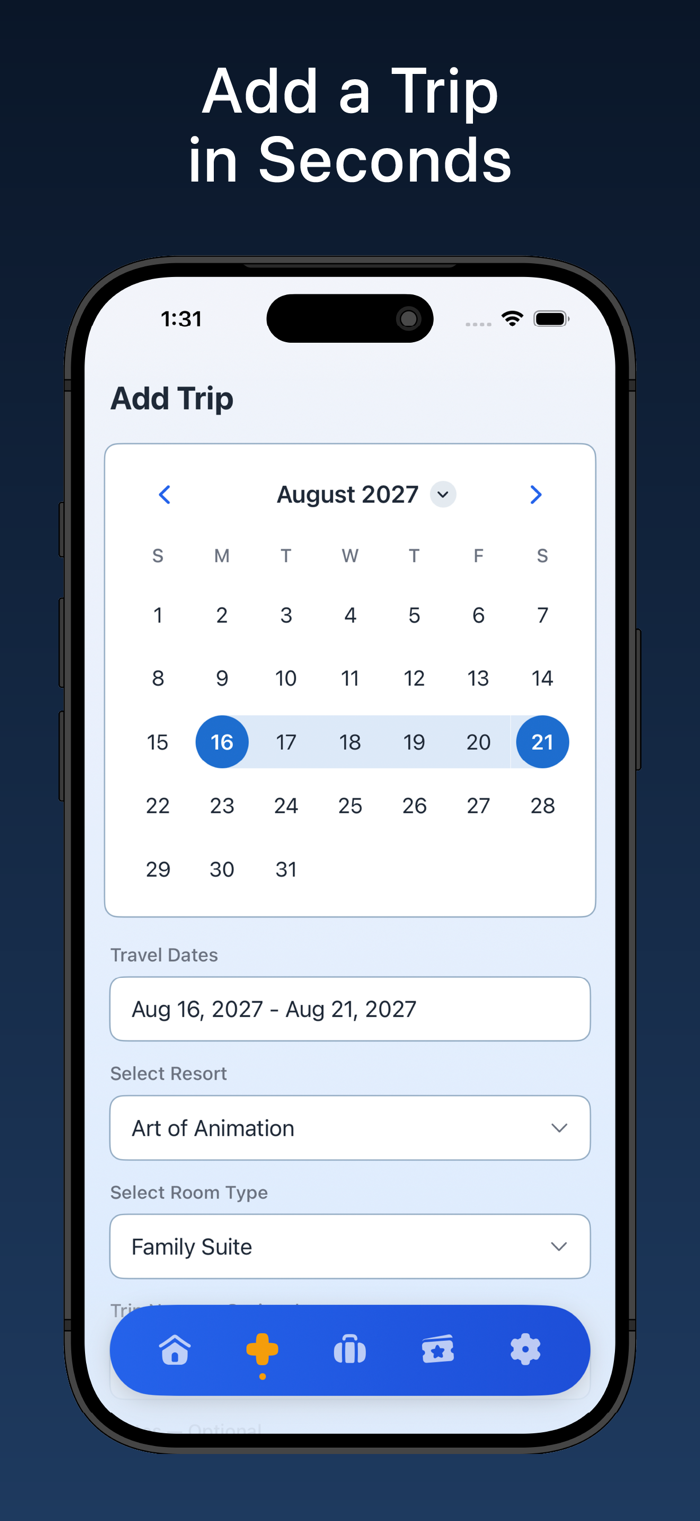 See your trip countdown front and center with resort-specific backgrounds. Every resort has its own photo so you feel the magic before you even arrive.