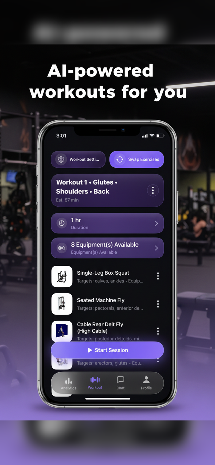 Ask questions, get form, routine and nutrition guidance, adjust workouts, and stay motivated with real-time coaching.