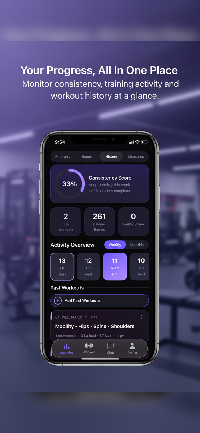 Track workouts, habits, and milestones so you can see what’s improving and where to adjust.