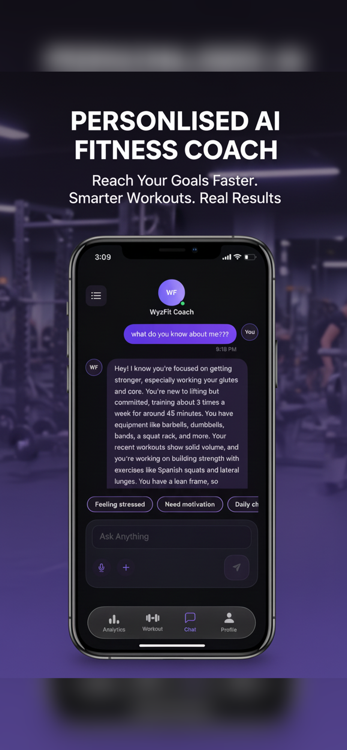 WyzFit AI is your all-in-one fitness and nutrition coaching app built to help you stay consistent and make measurable progress.