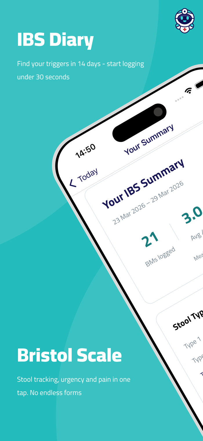 One-tap Bristol scale logging means you can track a bowel movement in under 10 seconds — even during a bad flare. No clutter, no calorie counting, just the data that matters for IBS.