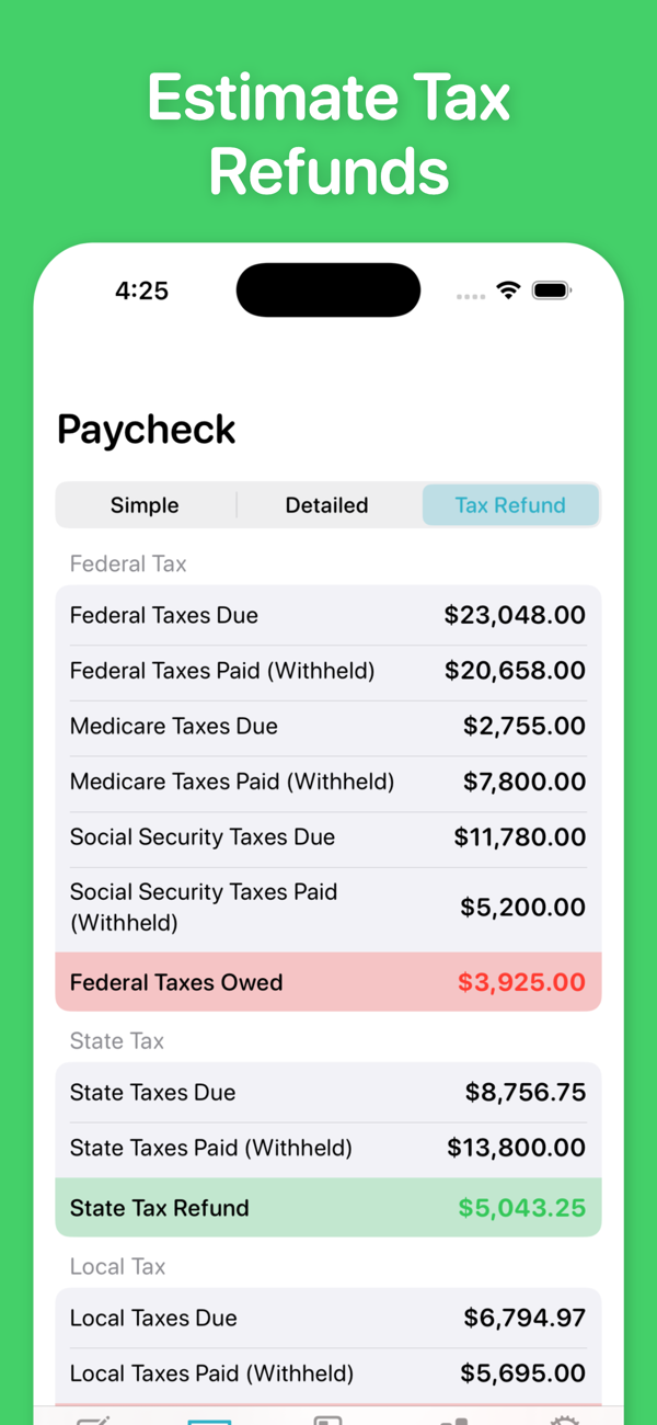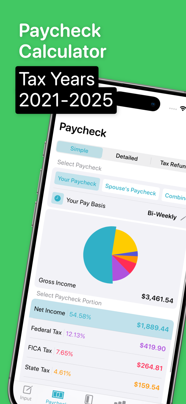 Take control of your finances with My Paycheck Calculator — the most comprehensive paycheck and tax estimation app for iOS. Whether you're comparing job offers, planning for retirement, or optimizing your tax strategy, get accurate breakdowns for tax years 2021-2026.