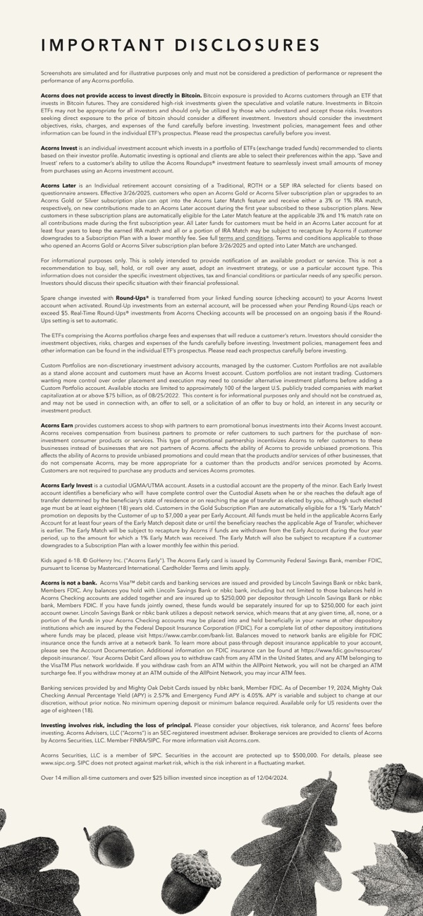 Disclosures are available in the images above and at www.acorns.com/disclosures
