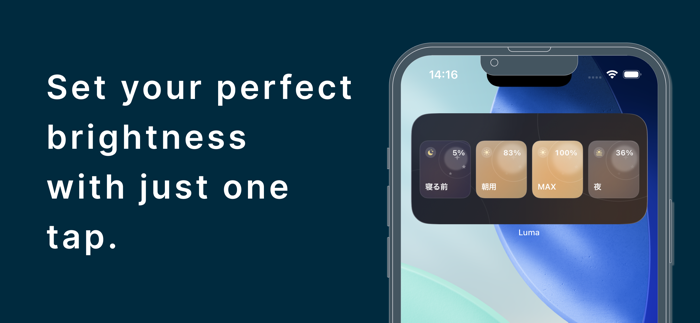 Luma lets you save your favorite screen brightness levels as presets and switch between them instantly. You can also launch presets from a Home Screen widget, so the right brightness is always just a tap away.