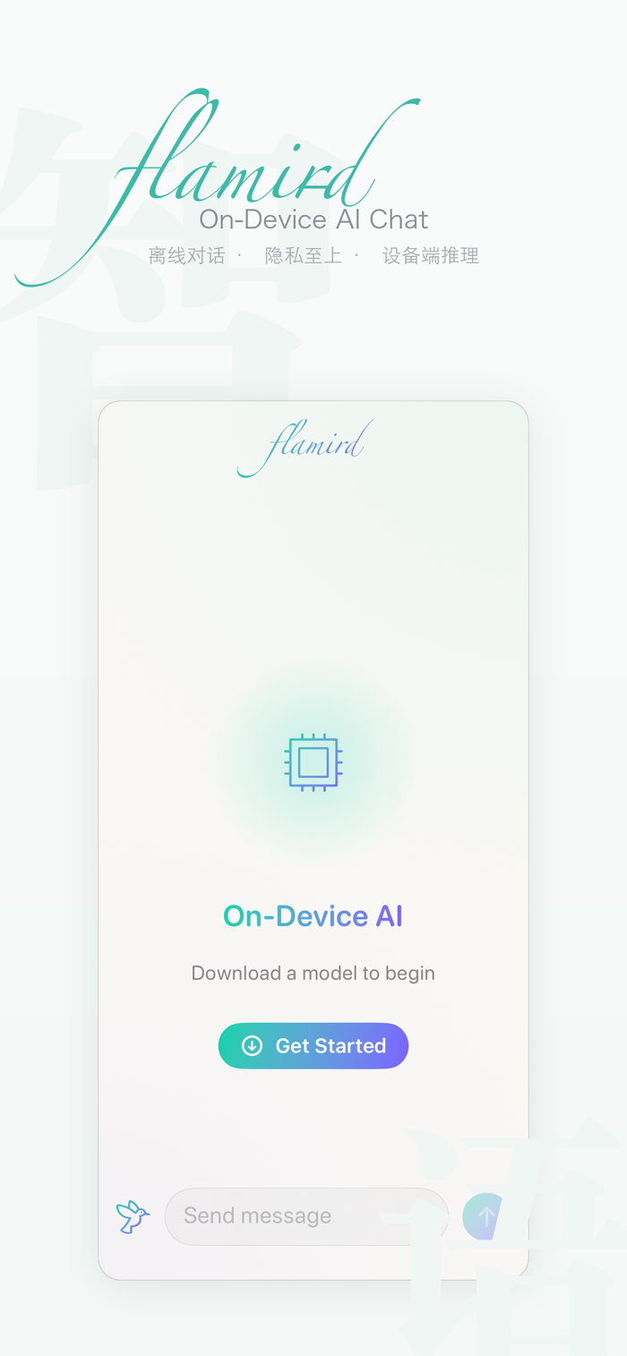 「flamird」让AI对话回归本质,在设备上直接运行大语言模型,无需联网注册,数据不离开手机。大语言模型运行在iPhone/iPad上,Metal GPU加速。收录7款高质量量化模型,支持多语言。对话数据存本地,无服务器、账号、追踪,卸载即清除。还有流式文字生成、简洁界面、深色与浅色模式、对话历史本地保存等功能,满足AI爱好者、注重隐私者及无网络环境下的使用需求。