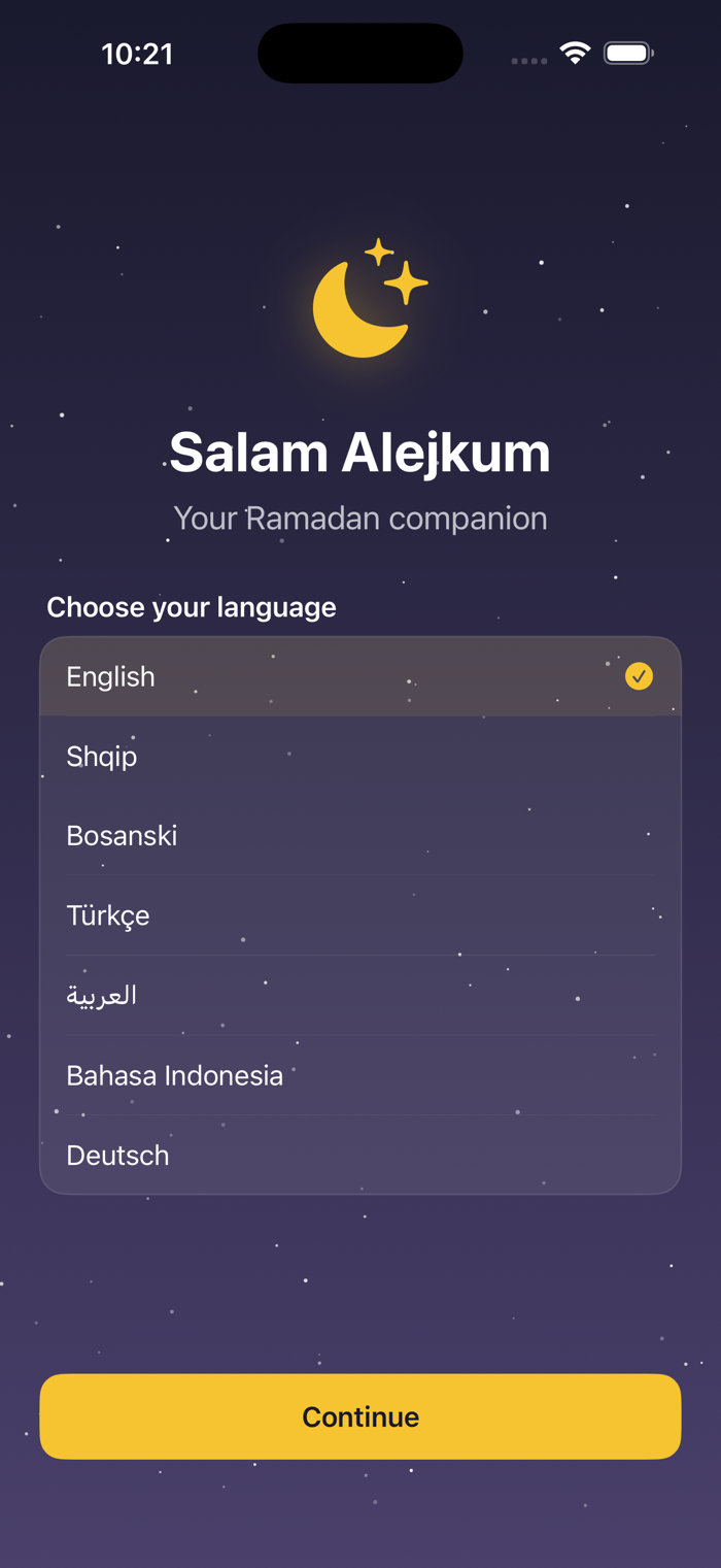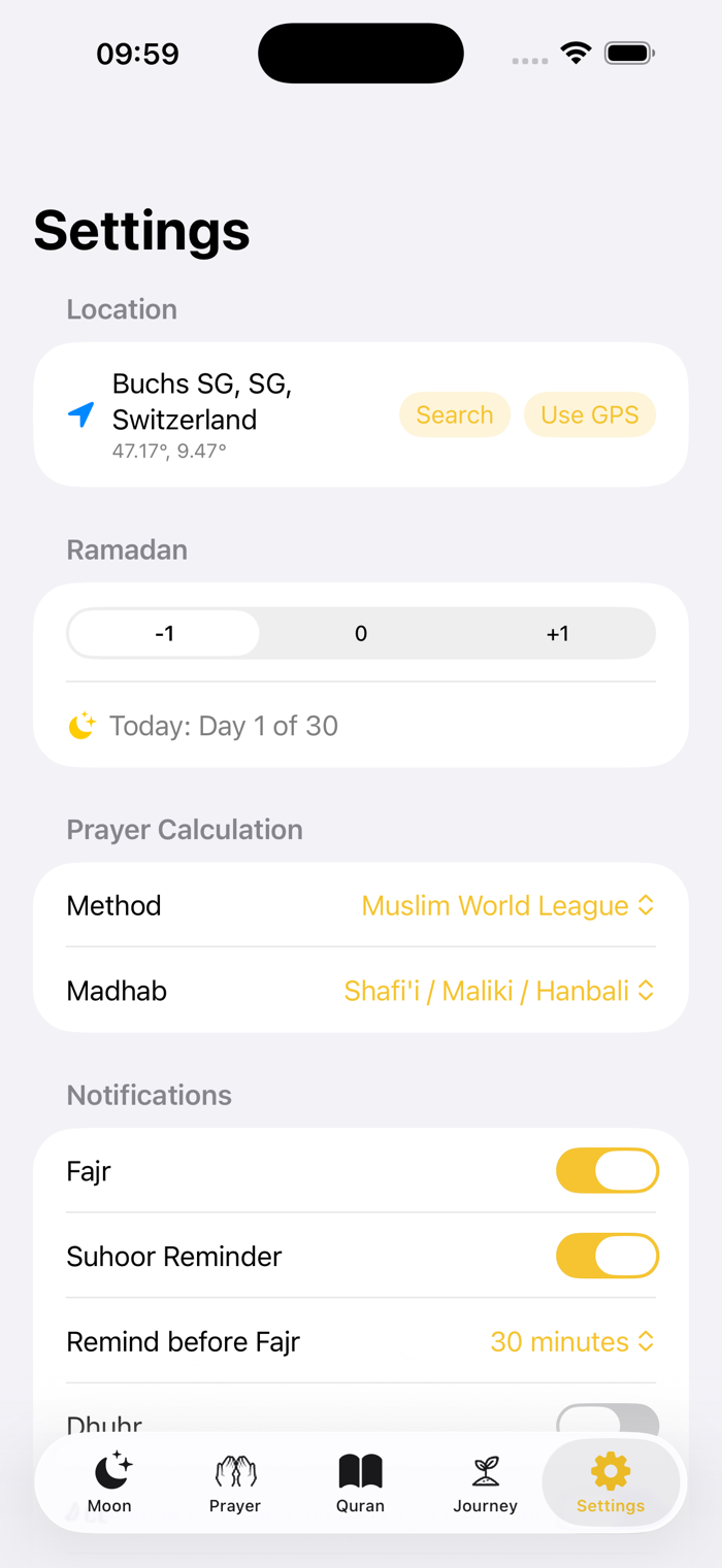 Home screen widgets with prayer times and countdown. Local reminders for Suhoor, Iftar, prayer times, and daily spiritual inspiration.