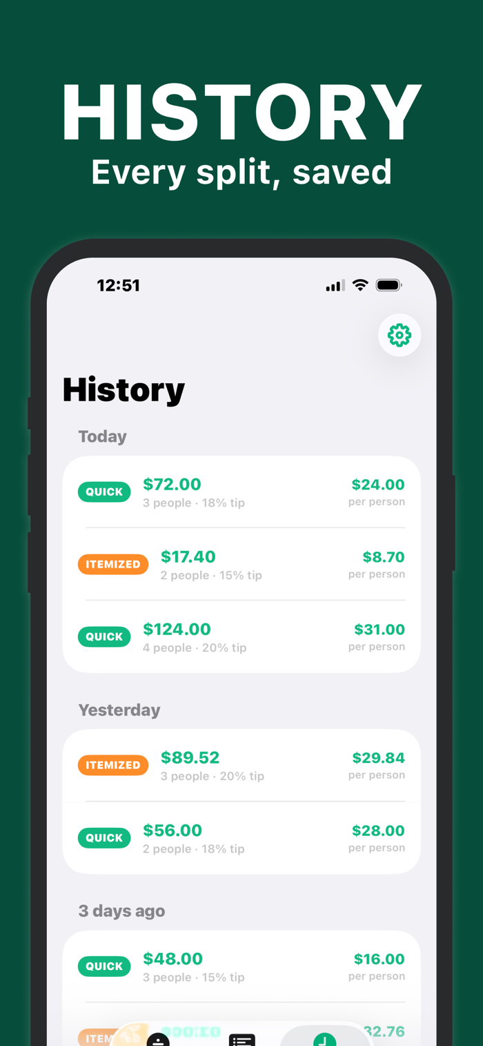 Split bills instantly — no more awkward math at the table.