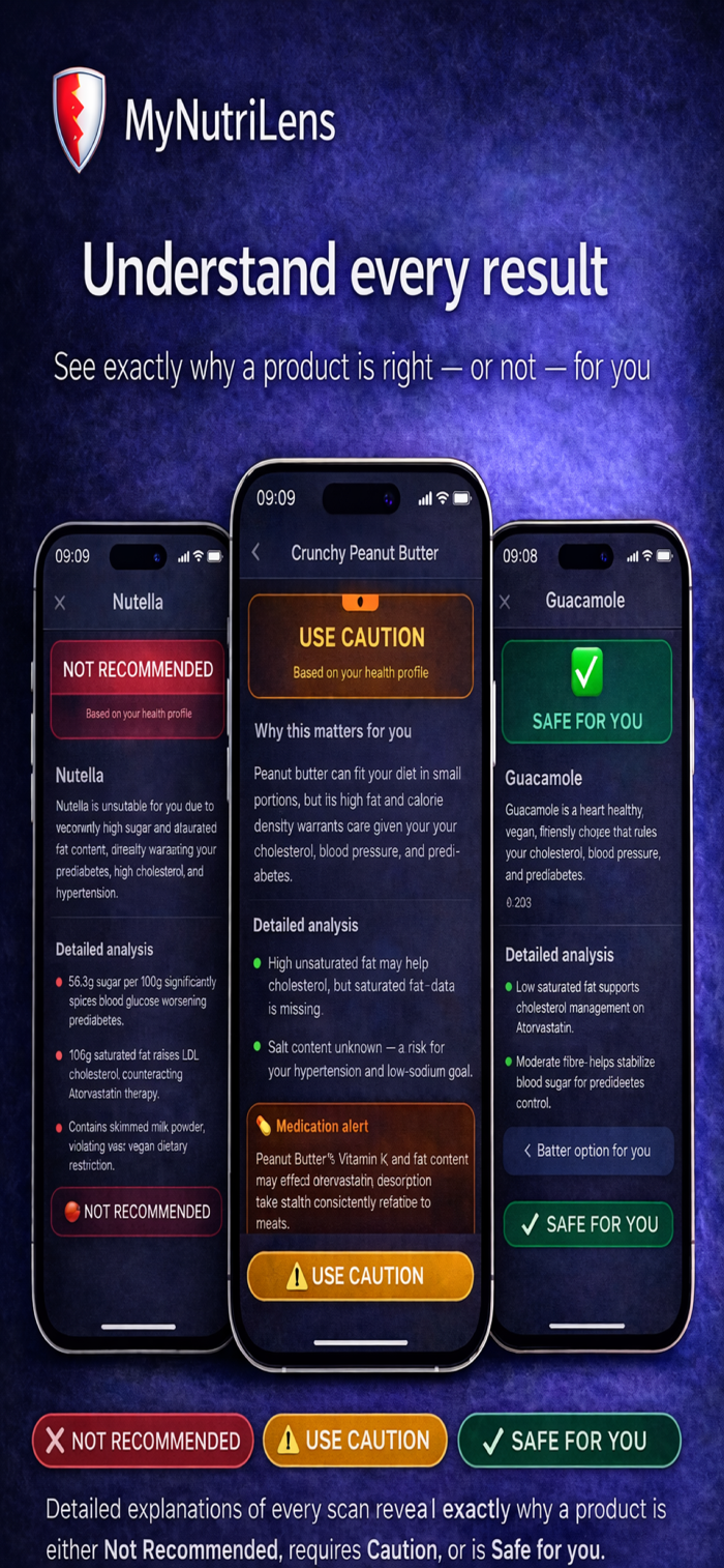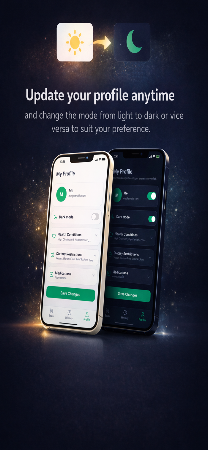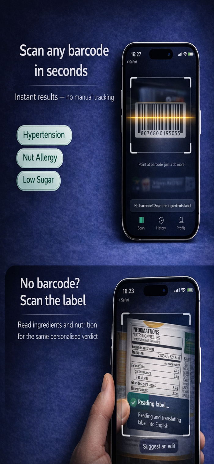 MyNutriLens是唯一能提供个性化健康见解的食物扫描仪。扫描条形码或食品标签,依据你的健康状况、饮食需求和用药情况,获得AI生成的专属健康判定。设置个人资料时输入健康状况、饮食偏好、用药信息,每次扫描都针对你个人分析。可扫描产品条形码或成分标签,还能自动翻译外文标签,无论食物来自何处都能懂,让你清楚所吃食物及是否适合自己。