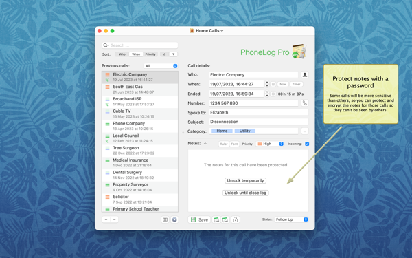 • Secure individual call notes using passwords
