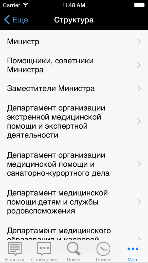 Мобильное приложение "Минздрав России" позволяет получать актуальные новости с сайта Министерства здравоохранения Российской Федерации, комментировать и делиться ими в соцсетях. С помощью данного приложения можно отправить обращение в Общественную приемную, просмотреть структуру Министерства, контактную информацию, ознакомиться с графиком личного приема граждан заместителями Министра и руководителями департаментов Министерства здравоохранения Российской Федерации и др.