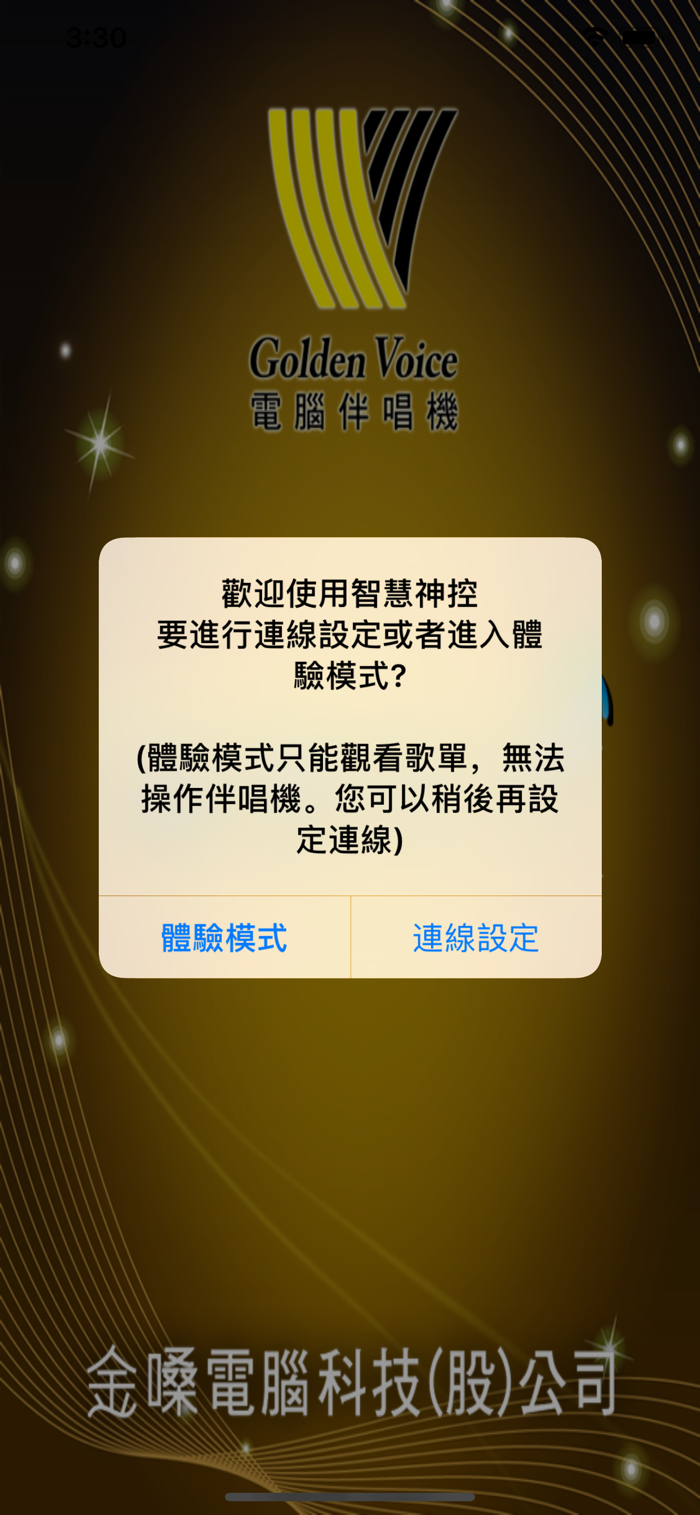 這個App提供給購買GoldenVoice金嗓公司卡拉OK伴唱機(硬體設備)的使用者,使用者下載App之後,可以透過App來操作卡拉OK伴唱機,就如同使用遙控器操作。伴唱機與App的連線是透過Wi-Fi來進行。This App provides to the users who have bought Golden Voice Karaoke machine. User can remote Karaoke machine via this App, just like using remote controller. The connection between Karaoke machine and App is through Wi-Fi.