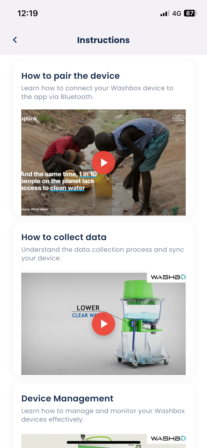 • Training & Support – Access quick-start guides, short training videos, and maintenance tutorials directly inside the app. Learn best practices for sustainable washing and filter handling.