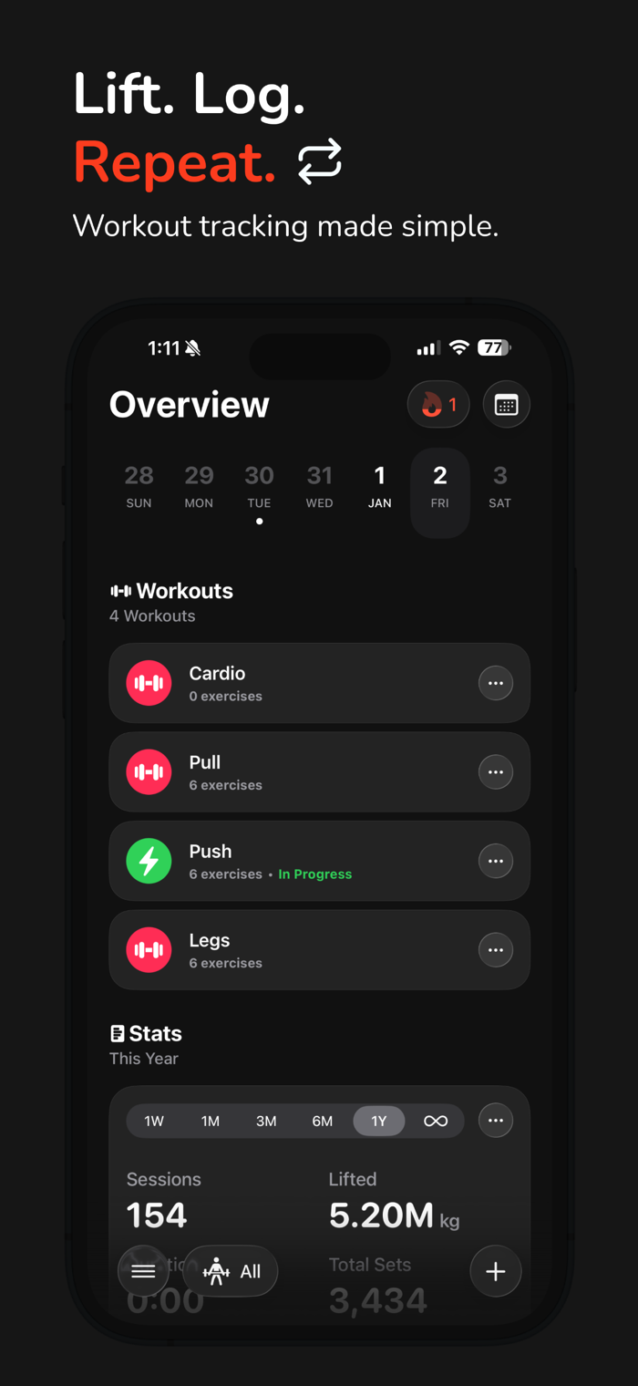 Built with SwiftUI and designed for iOS 26. Smooth animations, haptic feedback, and Live Activities so you can see your workout on your Lock Screen.