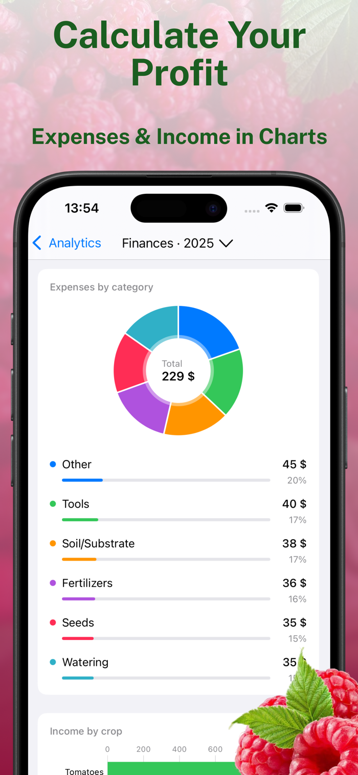 Analyze your success! See how much you've harvested, which crops grow best, and improve your results from season to season.