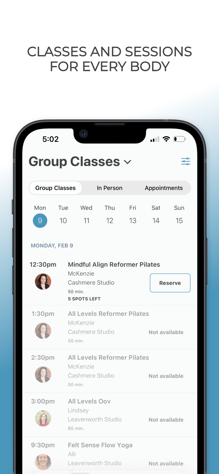 - Real-time studio schedules and easy in-app booking for Leavenworth & Cashmere locations