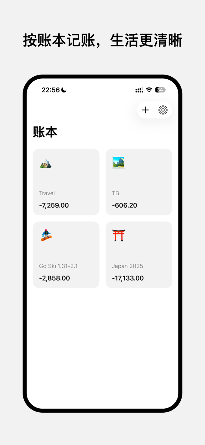 - 每个账本用独特的 Emoji 标识,一眼就能找到