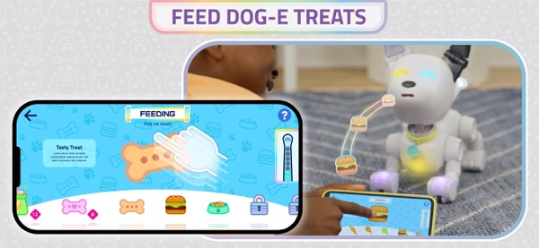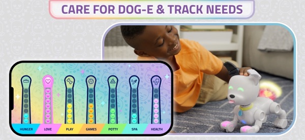 Dog-E是独一无二的机器人狗,通过蓝牙连接应用程序,可解锁更多玩法并定制。应用程序能让全白的Dog-E通过铸造展现独特灯光、声音和个性特质,还能进行个性测试、命名,保存多个档案反复铸造。能在应用中跟踪其需求,保持它开心,如通过应用“投喂”零食。
