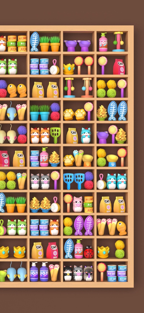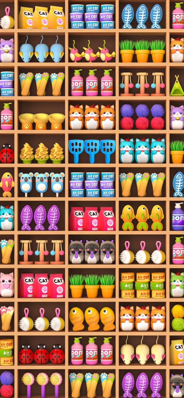 喵~尊敬的猫咪家长们,是时候为我们家中心爱的猫咪们大采购啦!但是,糟糕!商店的猫咪用品区太乱了,不知道能不能在出发前帮我们整理一下呢?