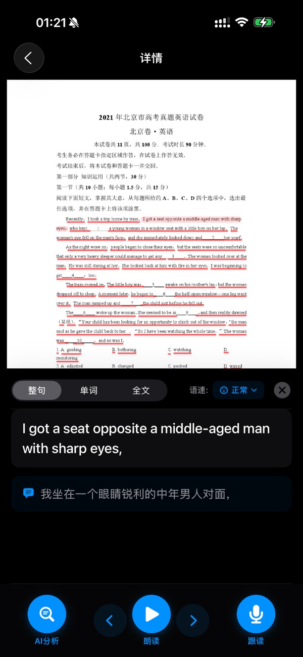 拍照朗读是一款智能文字识别朗读应用,融合OCR与语音合成技术。采用业界领先OCR引擎,支持中英文混合识别,准确率超99%,多种字体皆可精准识别。提供相机拍照、相册导入、PDF文档导入、微信文件导入四种方式。内置高质量语音合成引擎,支持中英文自动切换,发音标准清晰,有逐词逐句朗读模式、跟读练习功能,还能自动保存历史记录并云端同步备份,方便英语学习与阅读。