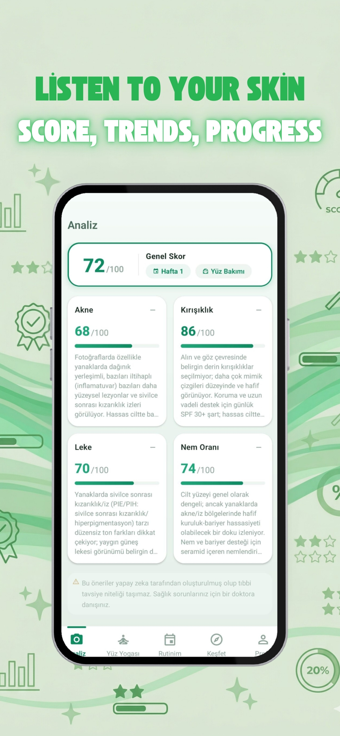 Dermova是一款人工智能驱动的美容护理助手,能分析皮肤和头发状况,为用户创建个性化护理方案。使用时拍照即可获得AI分析,遵循个性化7天护理流程。核心功能包括AI皮肤分析、AI头发分析、面部瑜伽、7天个人护理流程、进度跟踪、PDF报告、每日护肤小贴士与教育内容,支持6种语言,含英语、土耳其语等。