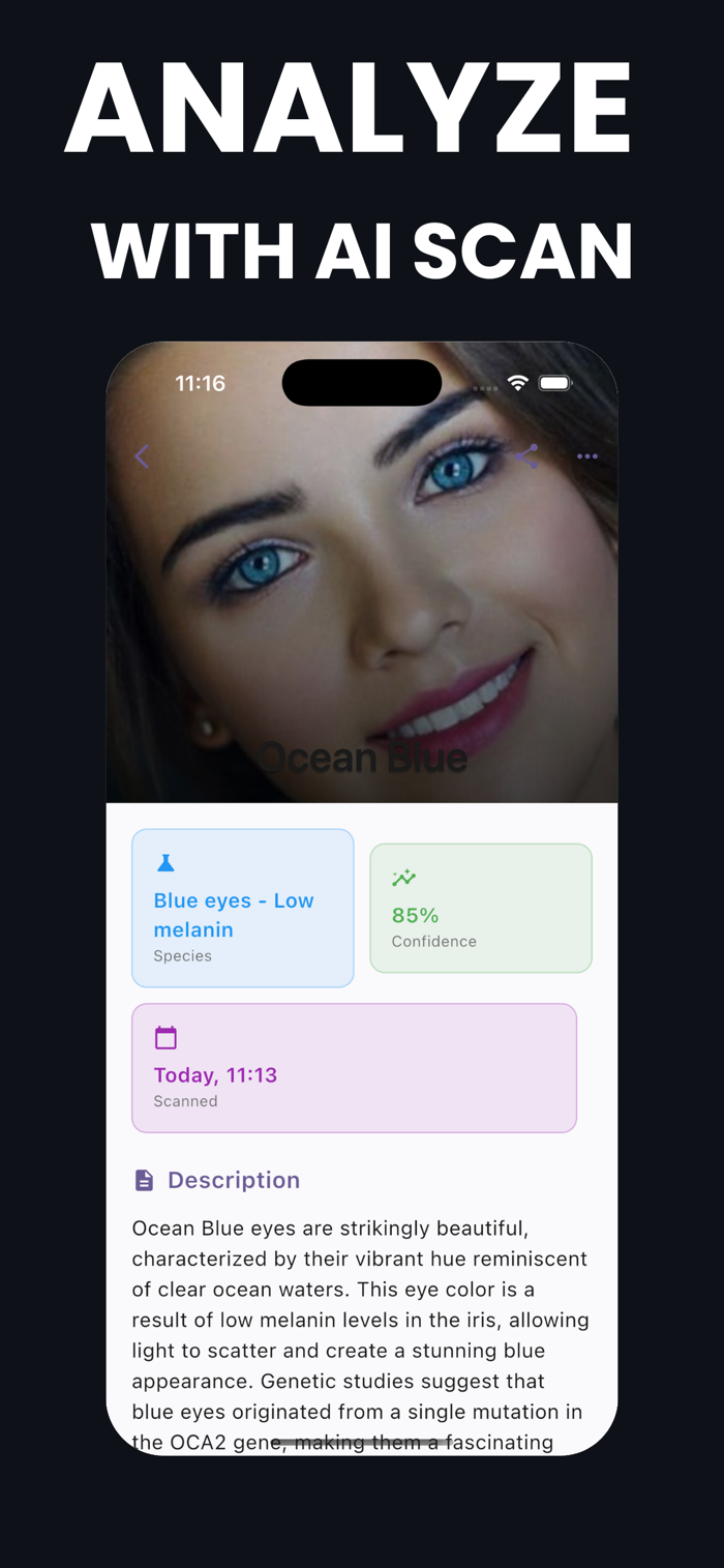 Simply take or upload a photo — our advanced AI instantly analyzes and identifies the exact eye color.