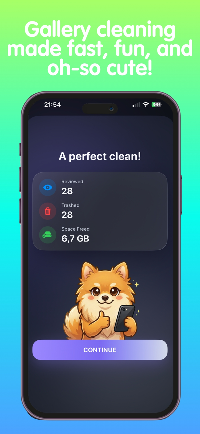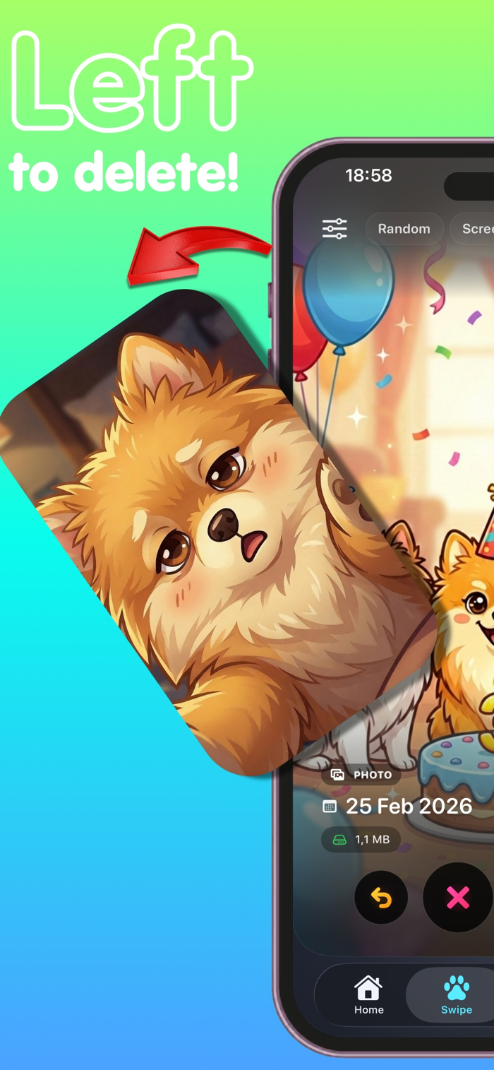Vicky helps you clean up your gallery with a swipe. Swipe right to keep it, swipe left to delete it. Review photos and videos faster, clear the clutter, and free up space on your iPhone.