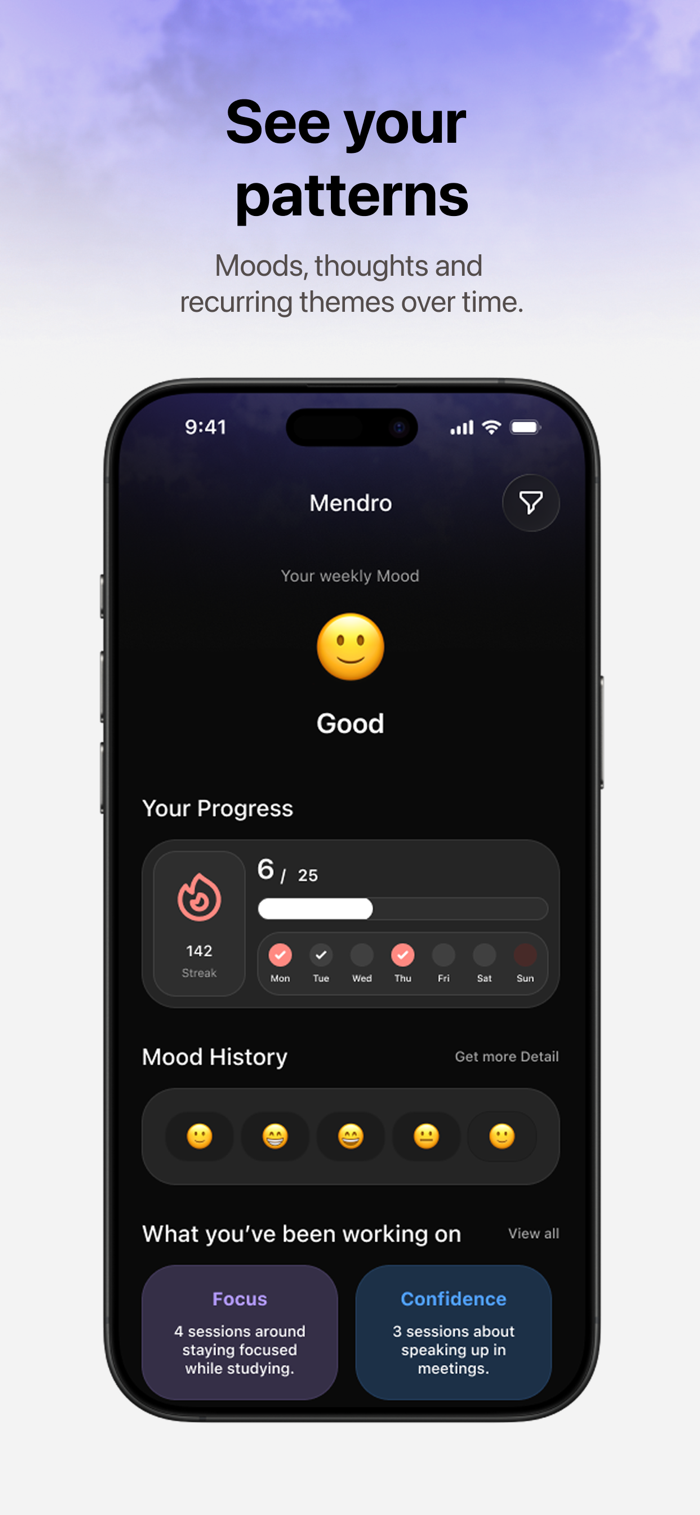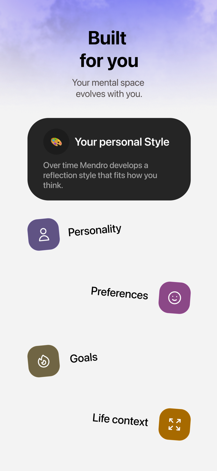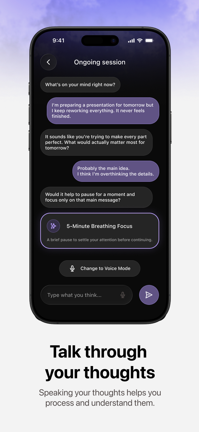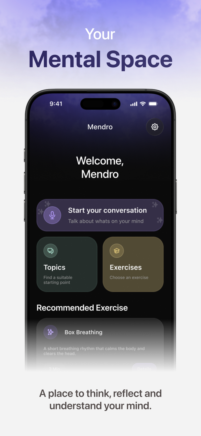 Mendro 帮助用户创造心理空间,能让人放慢节奏深入思考。可将脑海中的想法说出来,转化为清晰的思考,还能把对话变成可回顾的结构化日志条目,识别想法、情绪和决策中的反复出现的主题,从而了解思维、情绪及决策背后的模式,明白真正重要之事,帮助人们处理自身想法,避免压力、决策不明和心理过载。